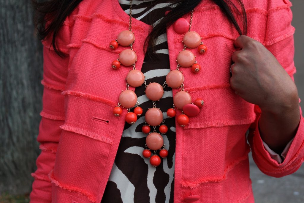 Coming to my outfit, most of the stuff is from J CREW. Since the outfit revolves around the necklace which sells as the J CREW BUBBLE NECKLACE, I chose to caption this post as ORANGE BUBBLES. This amazing statement necklace comes in a range of colors, and a blue one is on my to TO BUY list.