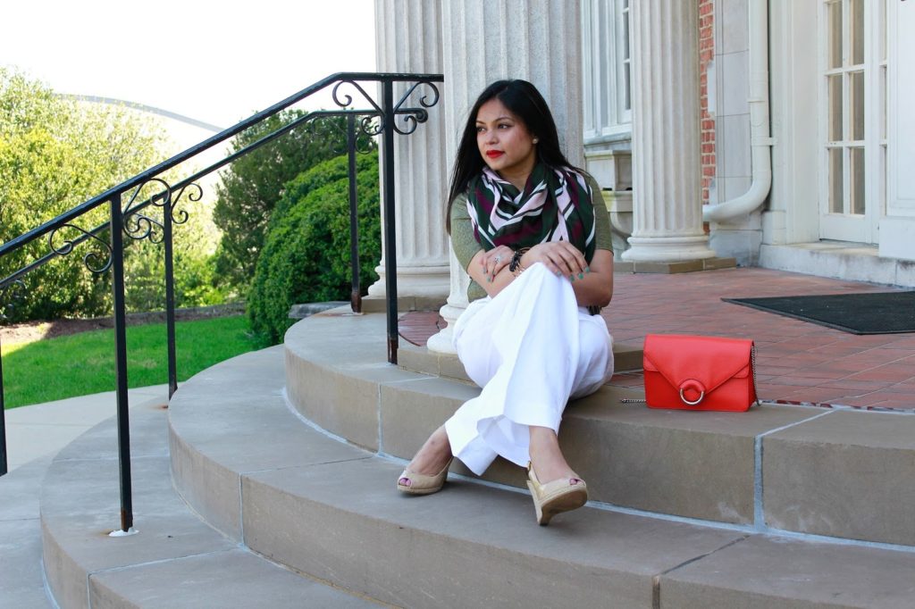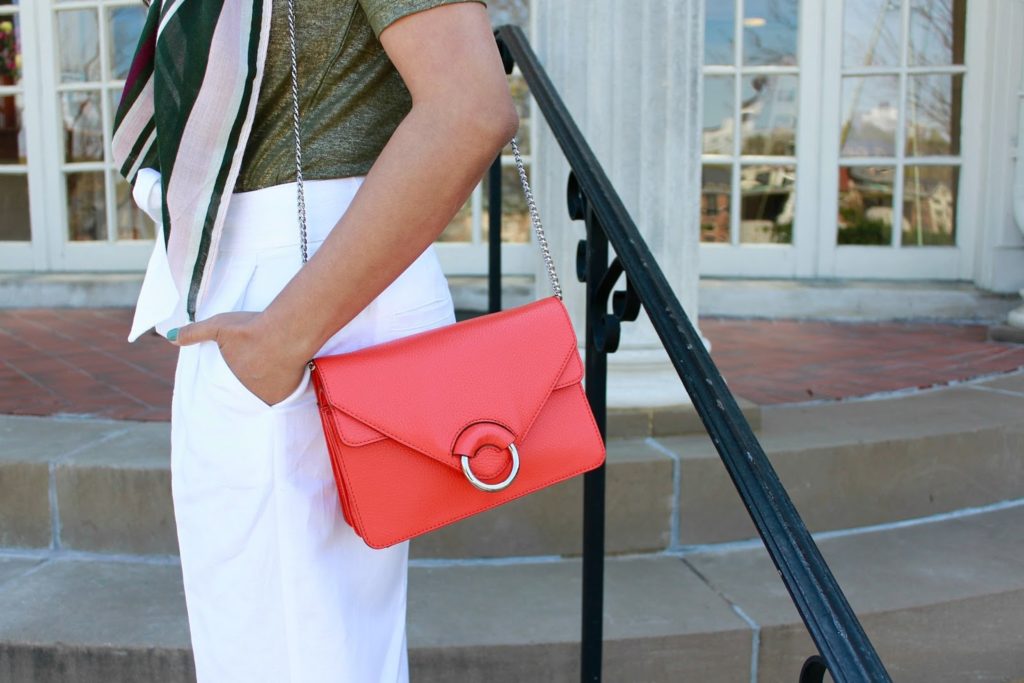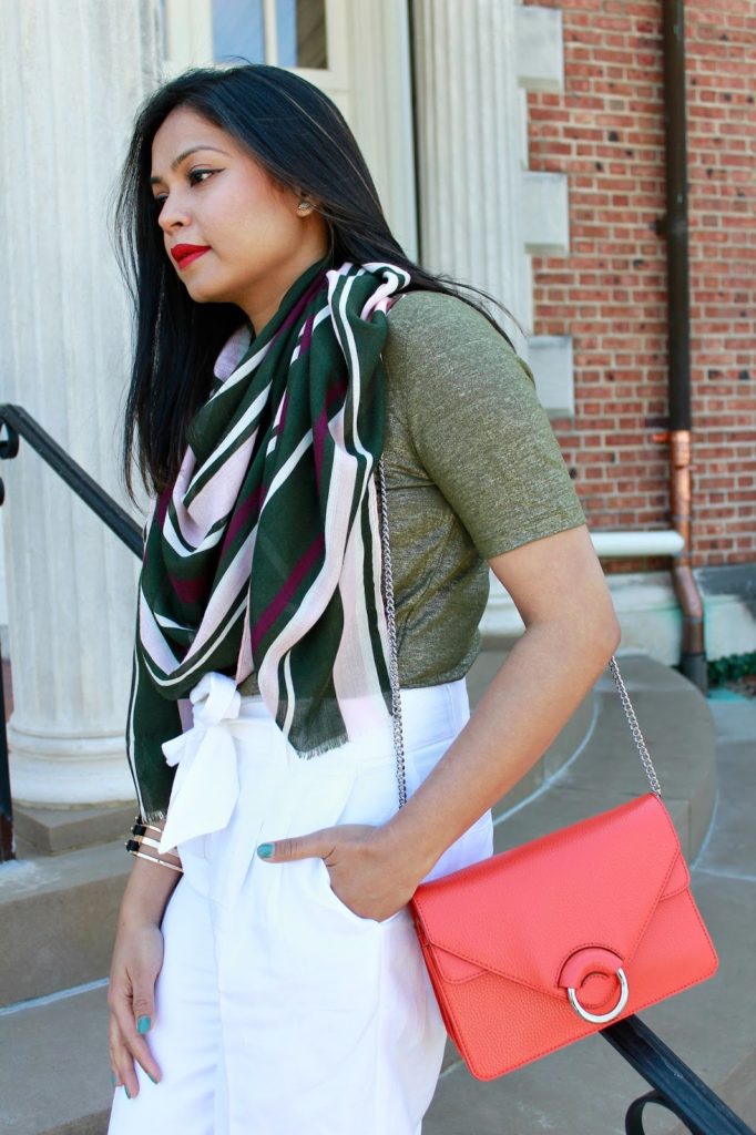 A pair of white trouser is like a blank canvas: thrown in any number of colors and you’ll have laid the foundation for a successful art. I’ve always loved a good mix of pastels with brights and this outfit is just what I was feeling that day.