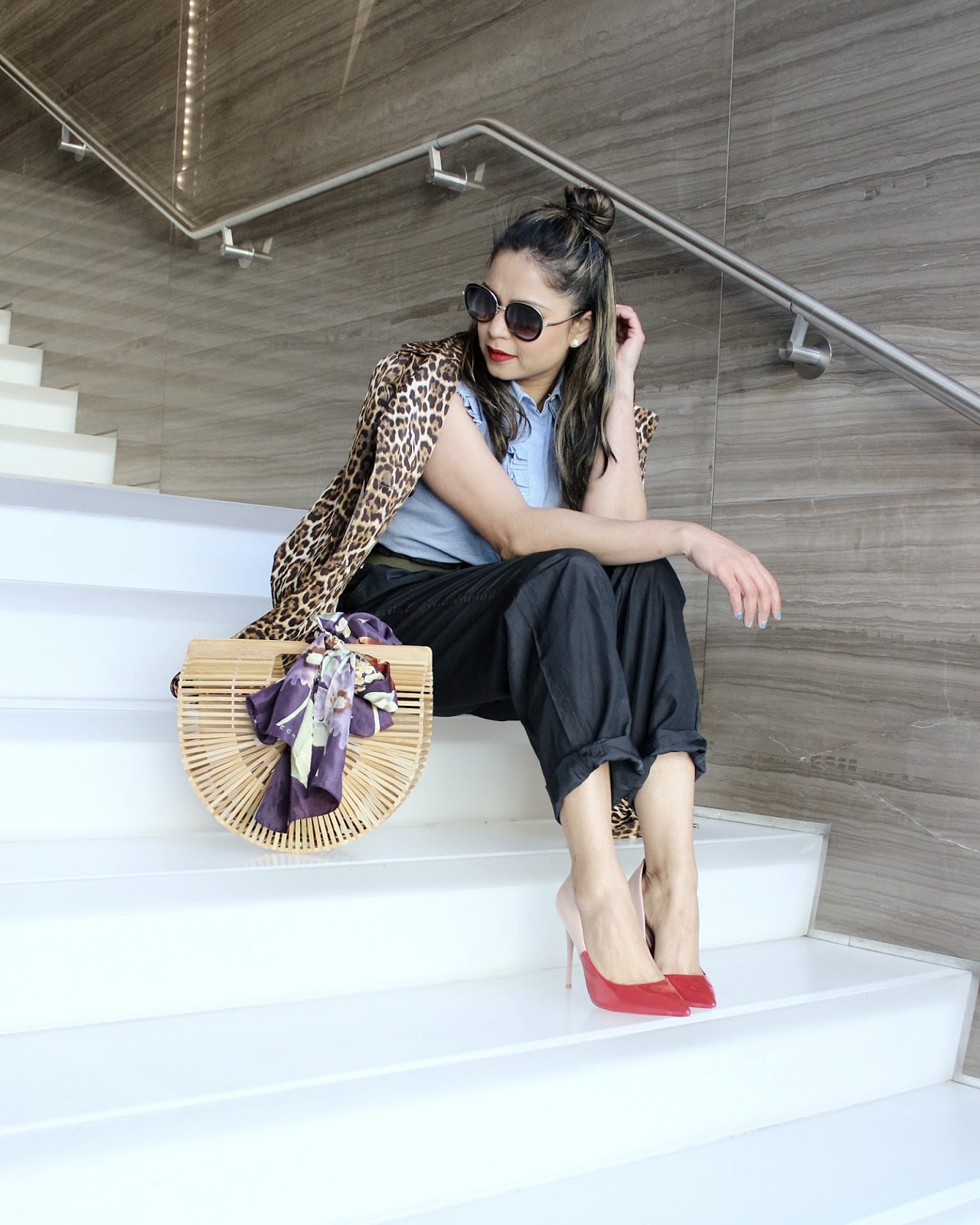 2) Have a plan– Depending on your budget, decide on how much you would like to spend on classics and how much on trendy pieces. Allocating your budget across the two boards would ensure you a fair share of trend-indulgence. For me a couple trendy pieces, over a couple of months works just perfect. In today’s look the wide-leg oversized pants and the bamboo bag are the two new trendy pieces, that I’ve procured in the past couple of months.