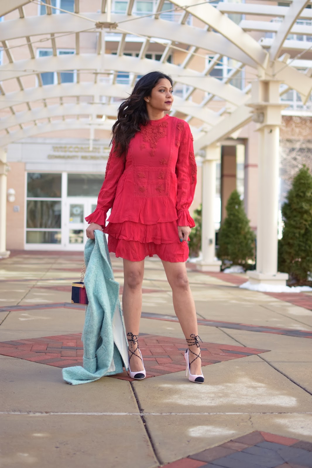 Not that I have any prejudice against this color or have been advised by an astronomer to avoid wearing red: it’s just time. Everyone goes through a phase where you are hooked on to one color, and pretty much everything, starting from your heels to your table napkins is in that color. Likewise for me, red never came in that favorite zone and hence stayed a stranger to my closet. But today I am daring this color and have to admit : I AM LOVING IT !