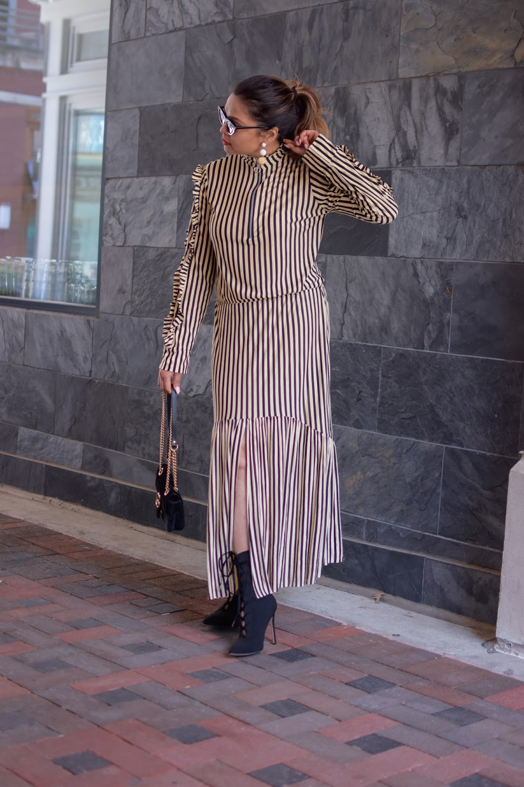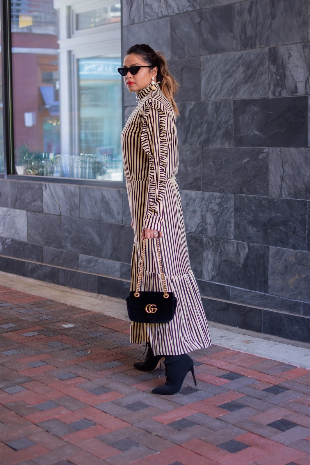 I don’t have the conventional 9-5 desk job, its a real flexible job. As for my office attire, there is no set dress code per se, but I like to maintain the workplace ethics. You would rarely see me in a structured pant suit, but you won’t find me in mini skirts either. I like to keep my clothing conservative and workspace appropriate. For instance I would wear that high-neck dress to work with those black booties, but in case a blogger event requires my presence later, how would I tweak my look to a more fashionable one???