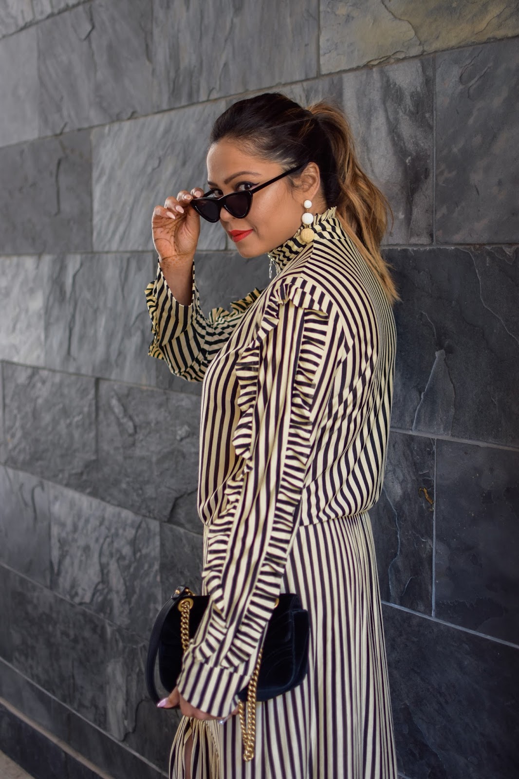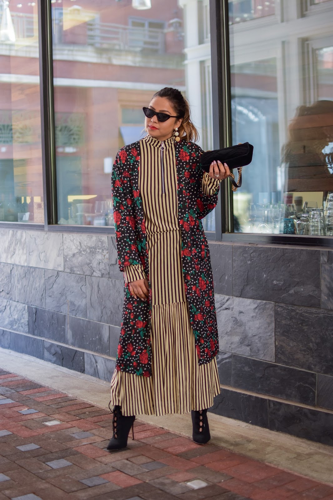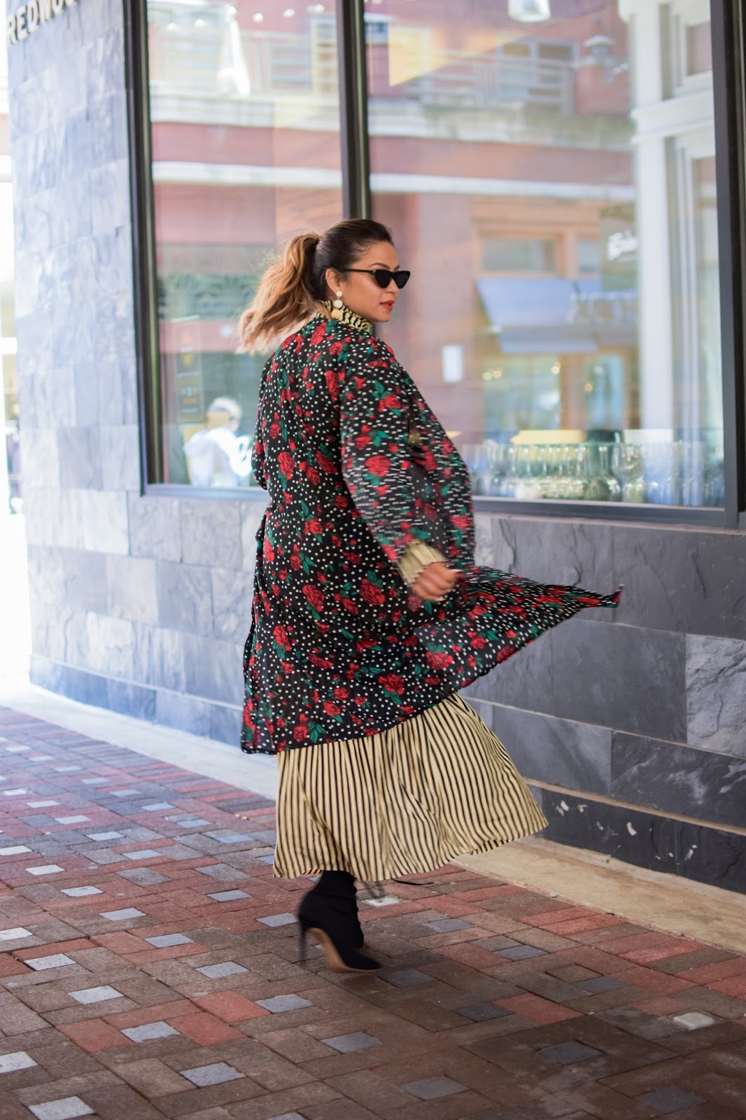 1) Always bring a layering piece to office– be it a trench coat, or a blazer or even a kimono, which btw is going strong this season, a layering piece will come in handy when taking your look from office to dinner or an event. I would wear a printed something and add an extra layer of printed later for that oh-so-printastic-outfit.