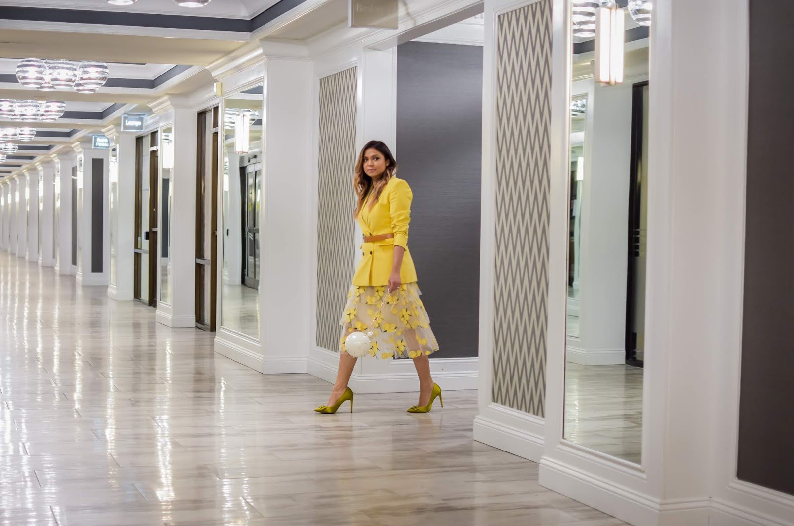 Having said that, this outfit is my first of the three “mellow-yellow” looks I will be posting this week. I bought this skirt on a whim, yeah I got sucked in by the 25% discount…again, thinking I might have to possibly return it. Having long legs is good but sometimes it is hard to find skirt lengths that hit at the right spot, especially when they just come in regular sizes ( no TALL sizes ). I had my own inhibitions about the skirt and inside lining length, but I still bought it online, with a firm belief in the back of my mind, that the skirt would be going back to the store. But to my surprise, the skirt fit me right and the hem hit my mid-calf, just where I would have ideally likes a tulle skirt to end.