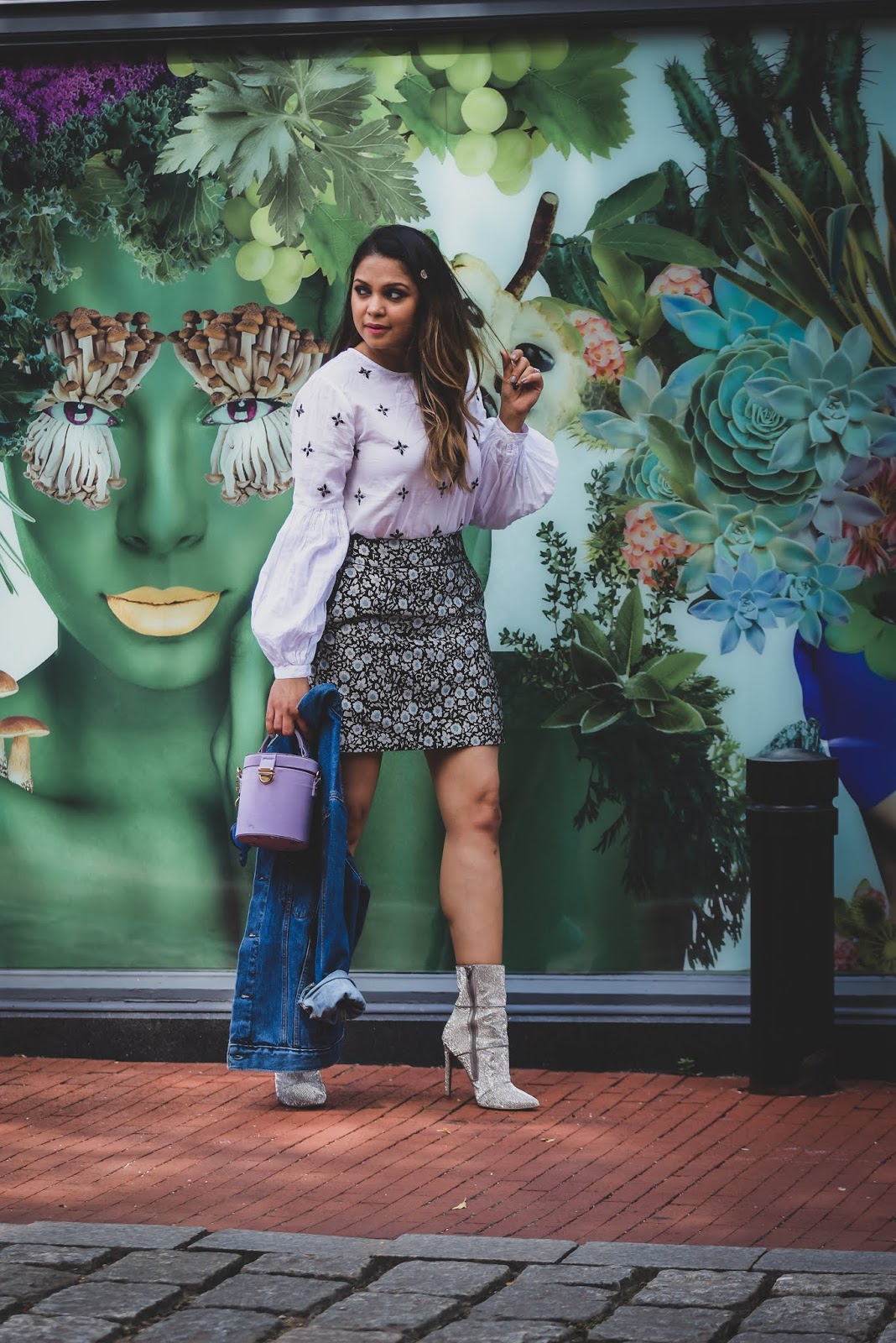 LEVI’S denim jacket c/o Potomac Mills // LOFT skirt // GAP blouse // STEVE MADDEN booties