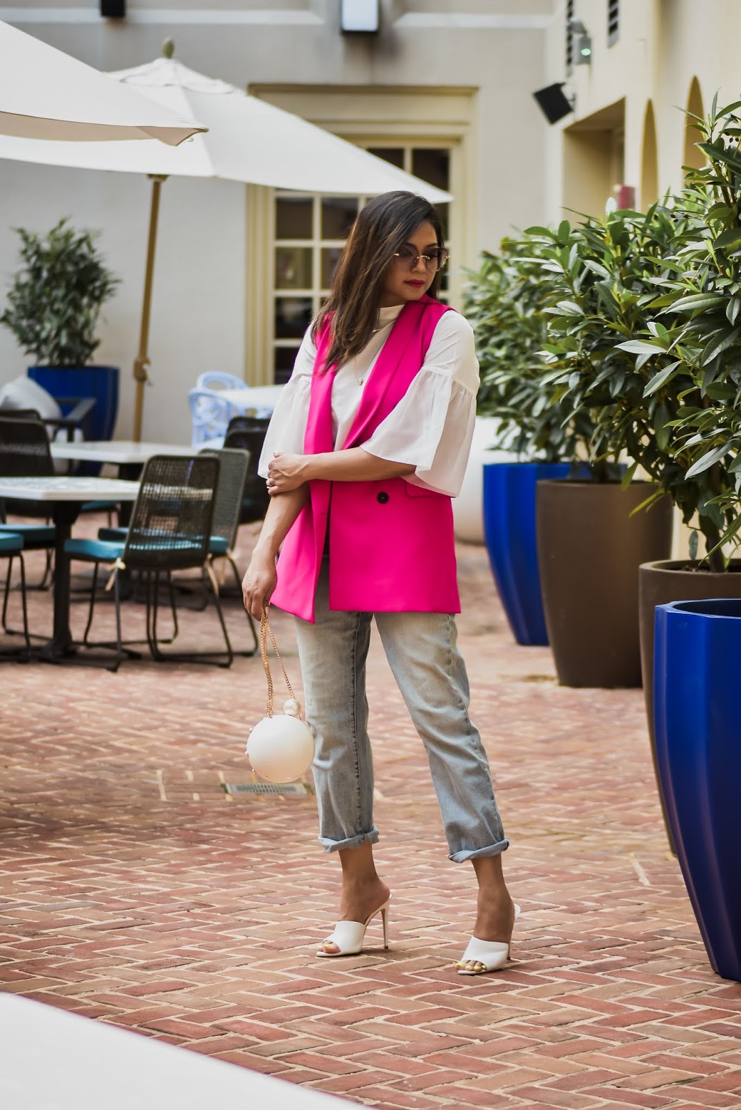 If you guys have been following me, you would know that I’m a sucker for a good co-ordinate set, proof here, and here. So, when I saw this magenta pant suit here, I was sold and it had to come home to me. I generally would wear my coordinates set here on the blog and talk about how you can split and style them as separates, but would never share actual looks featuring the individual pieces as separates.